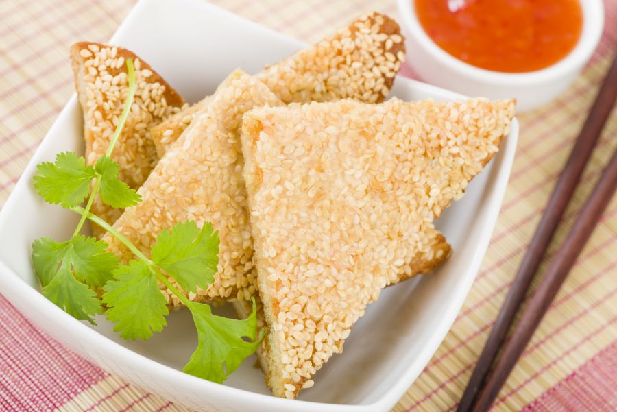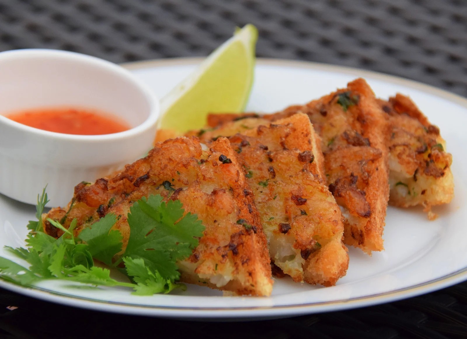 カリッと揚がったカノムパンナークンは、そのまま何もつけずに食べても美味しいですが、スイートチリソースにつけて食べるとたまらない美味しさです!