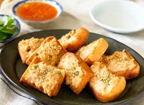 私の大好きなローカルタイ料理の第43回は、エビのすり身をのせた薄い食パンを油で揚げた料理「カノムパンナークン」です。